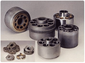 Hydraulic pump rotary parts especially Kawasaki equivalent : K3V series. Piston shoe assembly, cylinder block/barrel, swash plate, set plate. And, we work on any types of rotary parts where there's market.